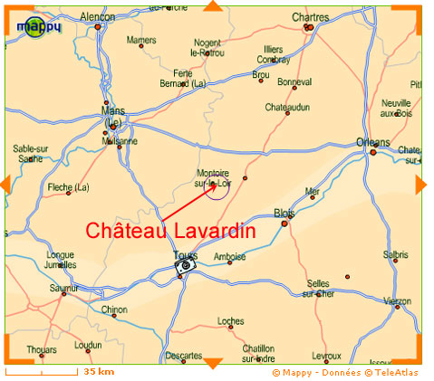 Le château de Lavardin est situé dans le Loir-et-Cher (41) à 15 km à l'ouest de Vendome et à 2 km à l'est de Montoire, au milieu du triangle formé par les villes d'Orléans, Le Mans et Tours. Il est situé à environ 200 km au sud-ouest de Paris.