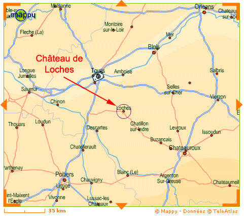 La Forteresse de Loches se situe à 40 km au Sud Est de Tours dans le département de l'Indre-et-Loire (37) à environ 280km au sud-ouest de Paris.