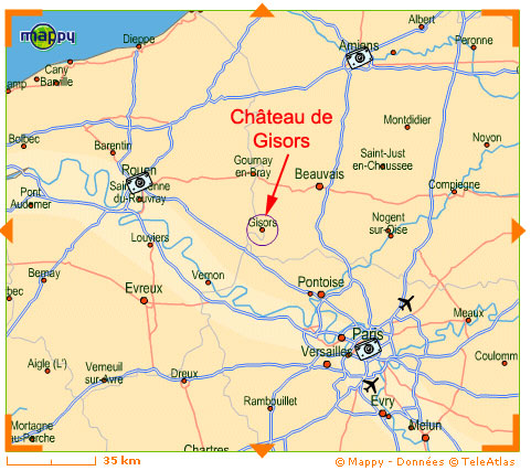 Le château de Gisors est situé dans le département de l'Eure (27) en Haute-Normandie à 75km au nord-ouest de Paris en direction de Rouen.